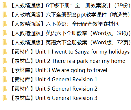 【新春大礼包】(人教精通版)六下英语:超全备课资源库(含课件、教案、素材)