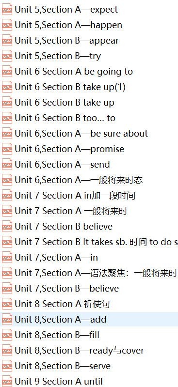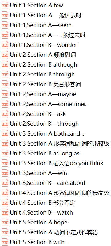 【微课全集】【人教版】英语八年级上册:全册配套微课视频(共61份,打包下载)